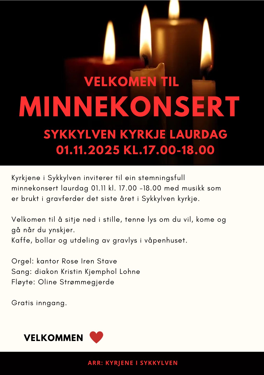 Sykkylven kyrkje laurdag 1. november kl. 17-18.
