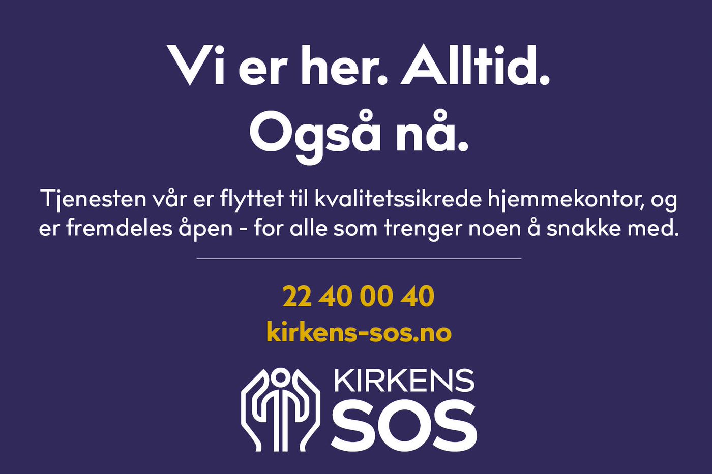 PS: Som krisetelefon kan vi anbefale Kirkens SOS sin døgnopne kriseteneste på telefon og internett https://www.kirkens-sos.no/